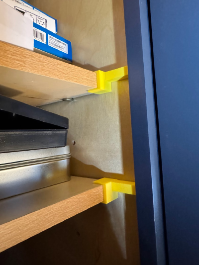 Якщо прицьому поличка із барахлом буде над принтером - біда. Нехитрим способом заблокувавши висування поличок вперед тої біди можна уникнути.
