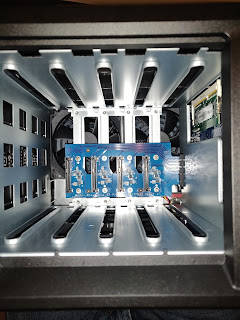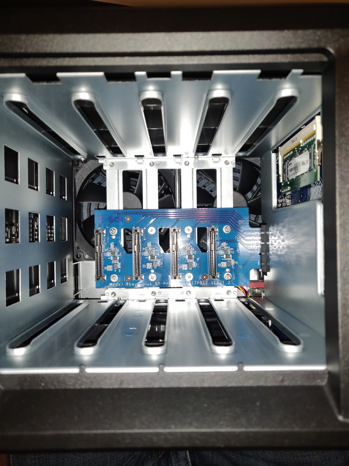I put one of the two purchased drives in it — to get some experience with expansion in the future, while nothing is configured yet and there’s nothing to lose if I need to drop everything and start fresh.