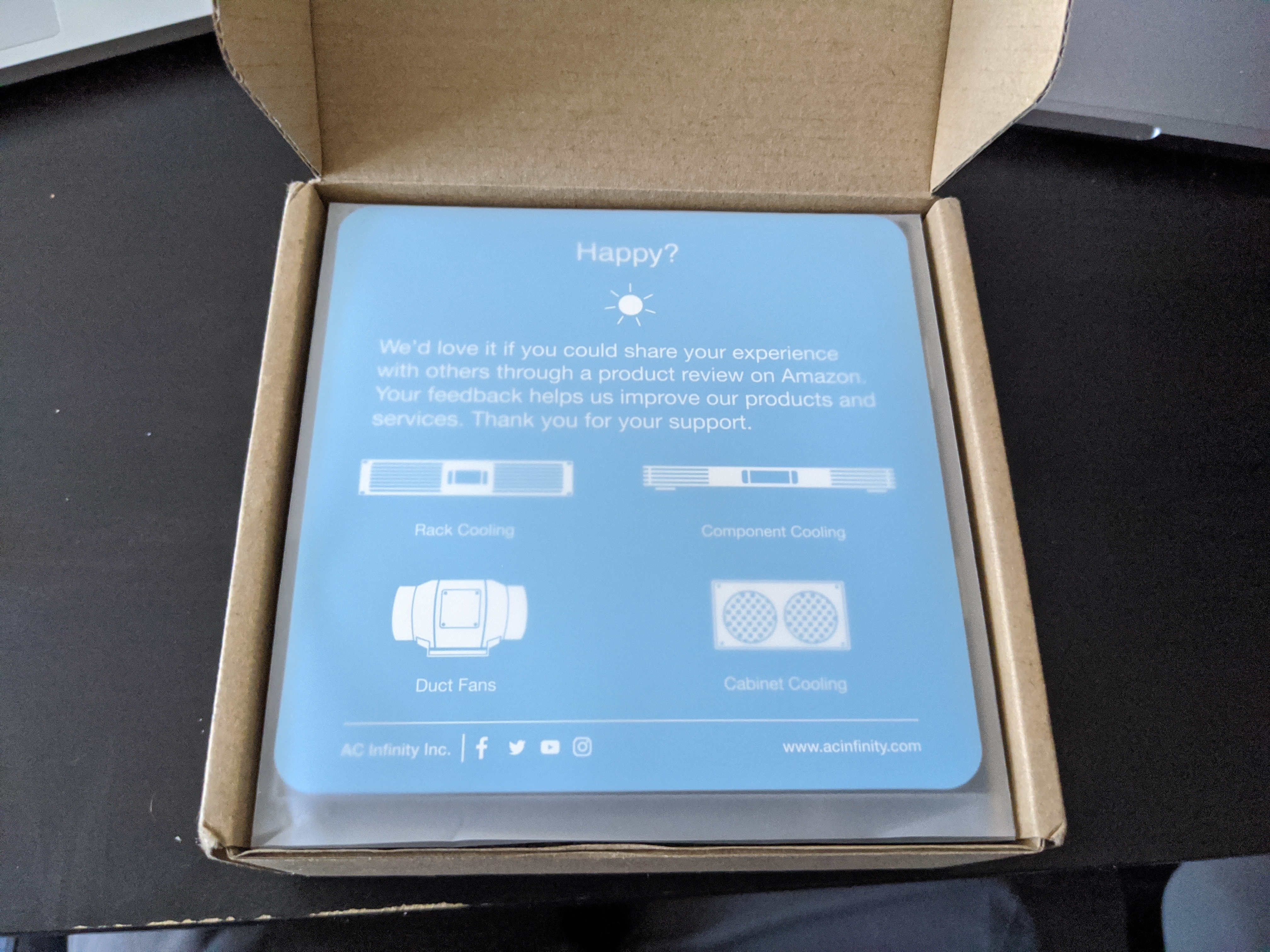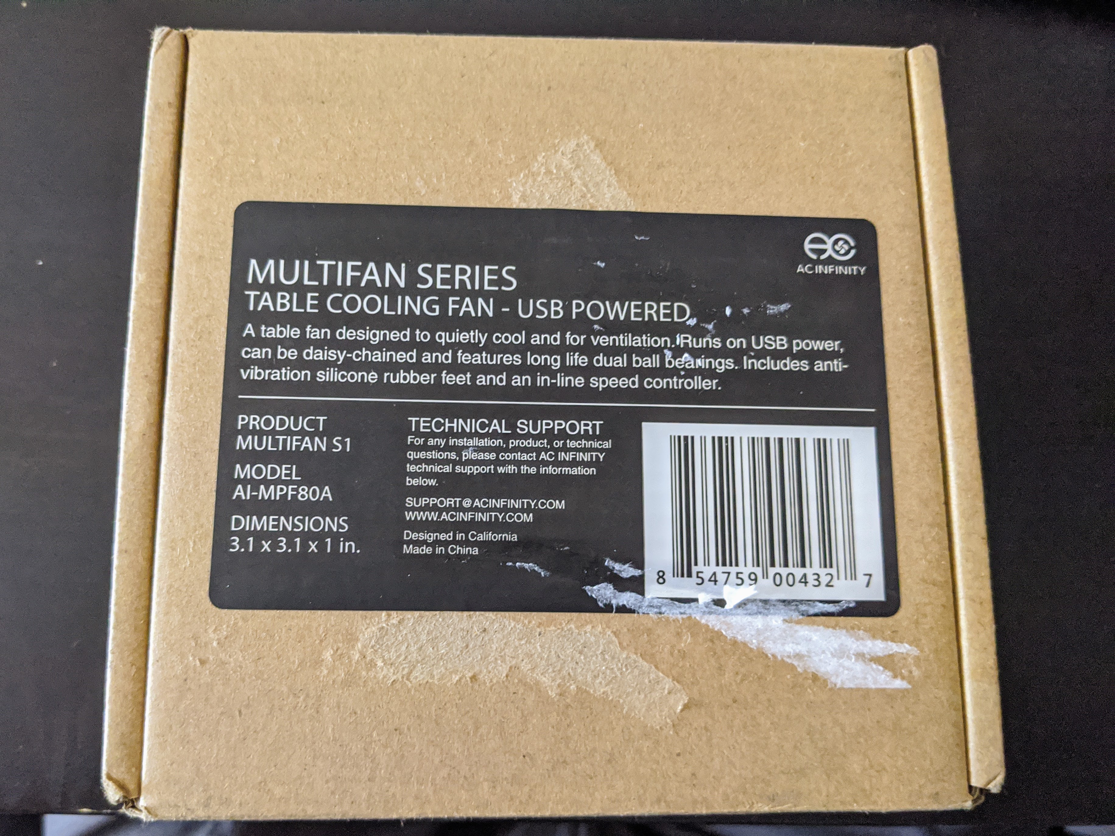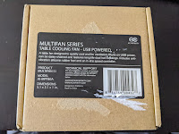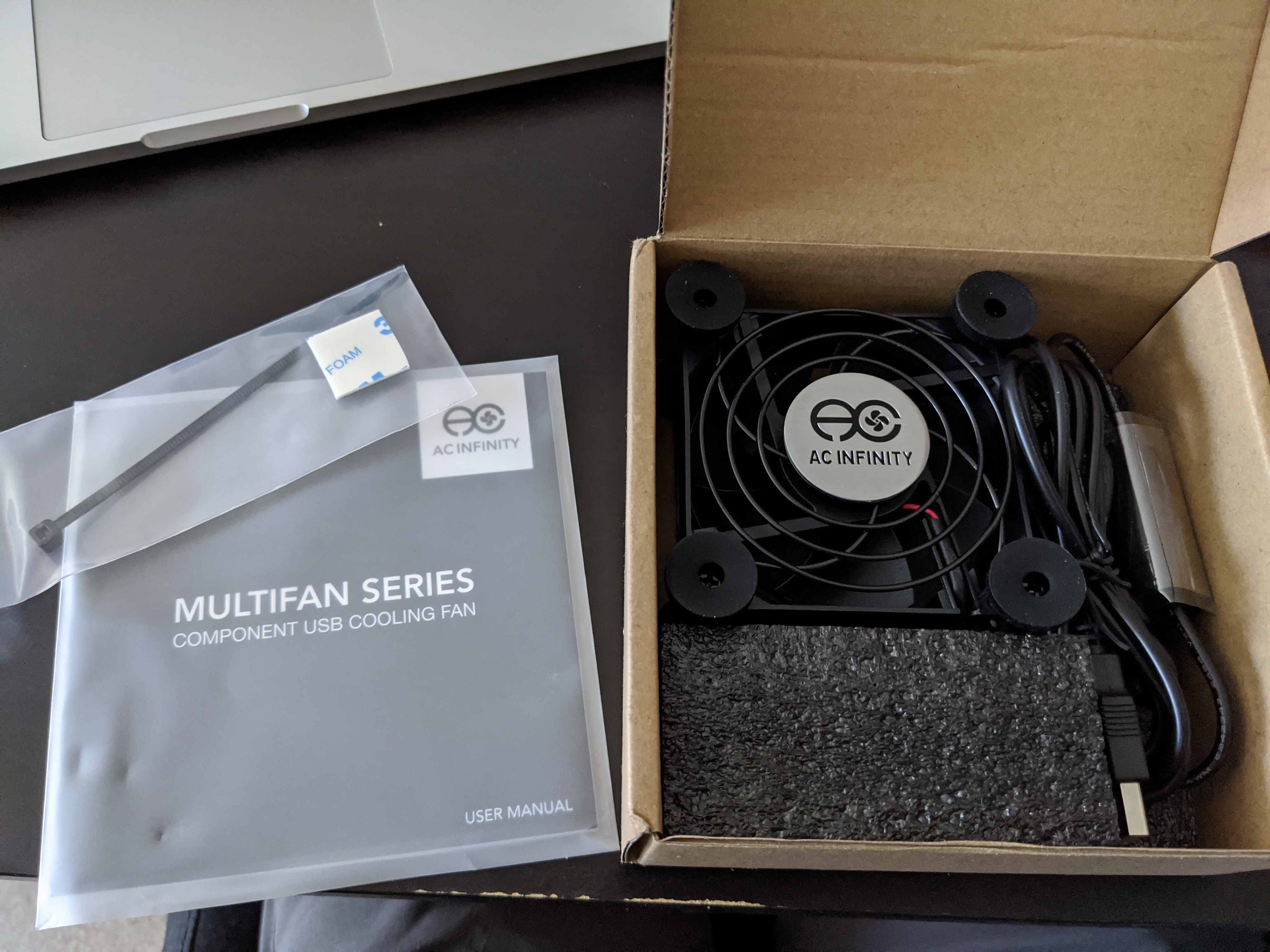 So a quick Amazon search turned up the smallest (80mm) decent consumer fan I could find — USB-powered, a 3-speed gearbox, and advertised as quiet.