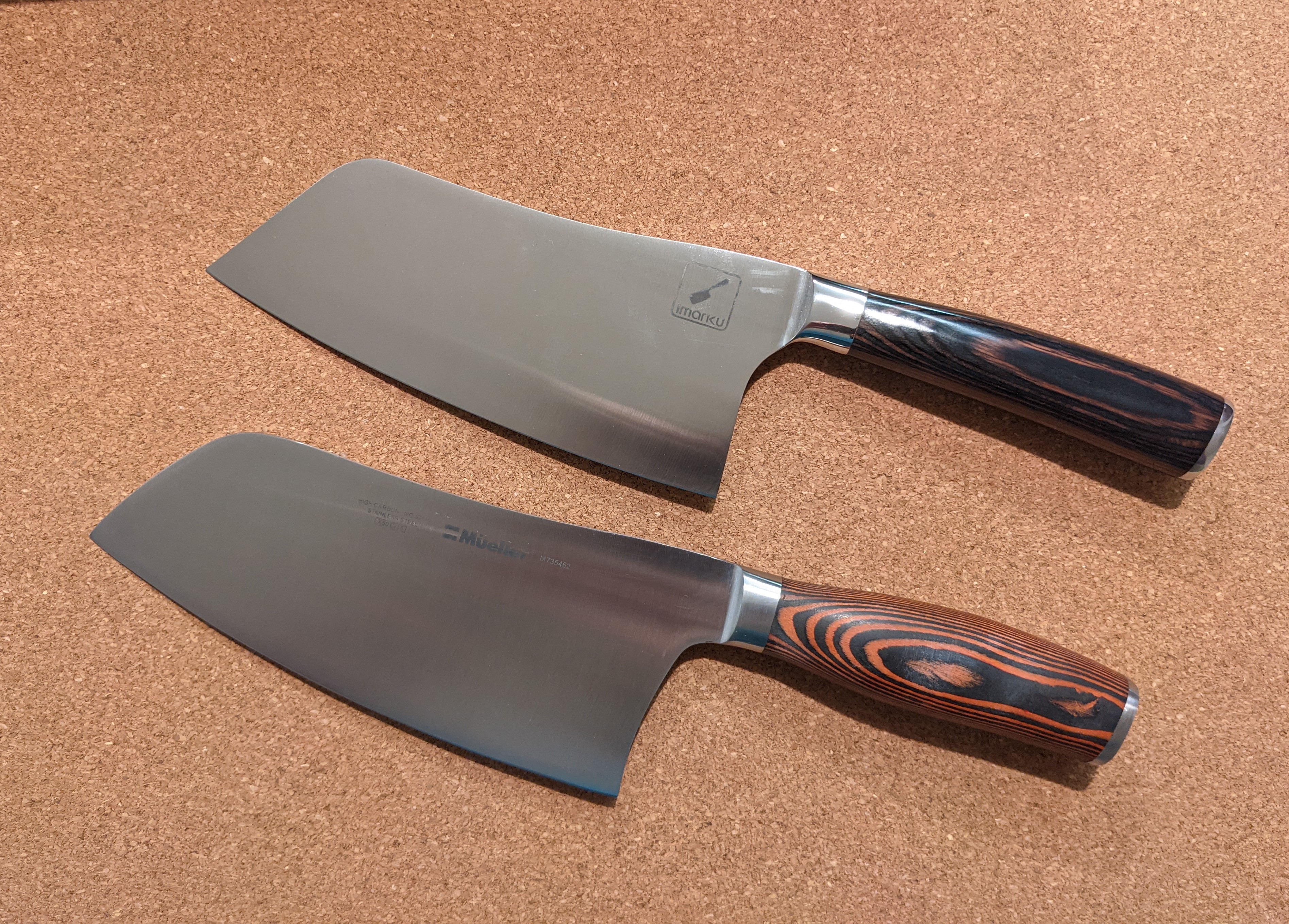 - First knife Mueller 7-inch Cleaver Knife, Vegetable Meat Chinese Chef’s Knife, German Stainless Steel with Ergonomic Pakkawood Handle, for Home Kitchen and Restaurant by Commerce Planet Learn more: (brown handle, cheaper)